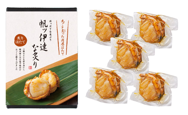 この『帆ッ伊達な炙り(ほっだてなあぶり)』は、冷凍のホタテ貝柱を使用しているのではなく、南三陸産の活きたホタテを殻から外し、まだ活きている状態から「一ノ蔵特別純米酒辛口」と「天日塩」だけで味付けし、ふっくら焼き上げた贅沢なホタテの炙り焼きなんです。