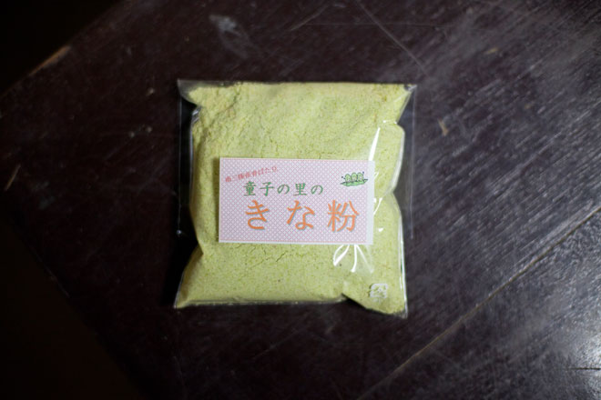 そしてできた完成品がこちら。「童子の里のきな粉」。童子とは南三陸町入谷地区童子の地名。南三陸でとれた大豆で作る、手造りのきな粉。僕も思わず2つ即買いしました^^