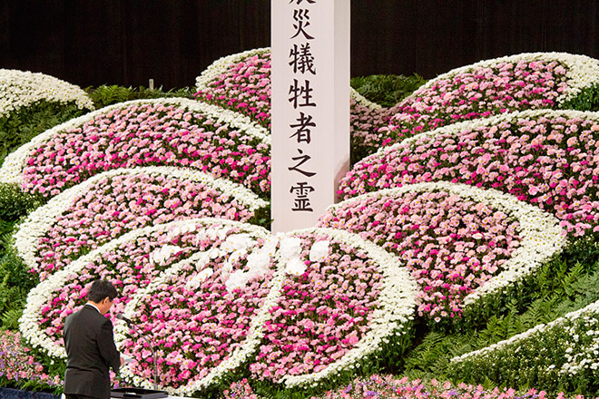 ▲南三陸ベイサイドアリーナで行われた「東日本大震災三周年南三陸町追悼式」