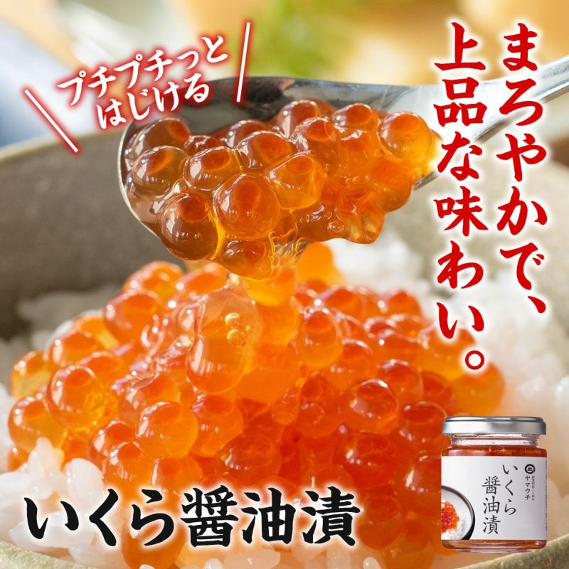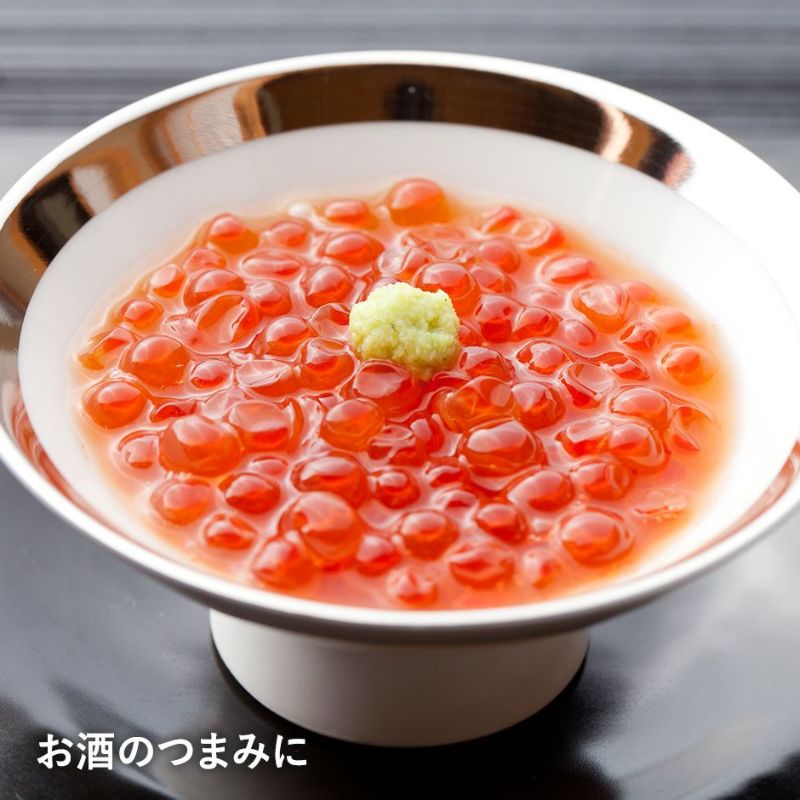 いくらの美味しさを生かし、まろやかで甘みのある特製醤油ダレに漬けています。ごはんにたっぷりのせて、お楽しみください。