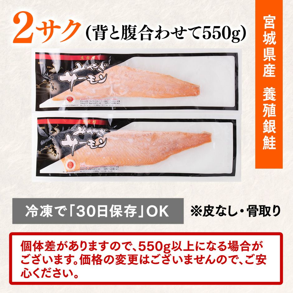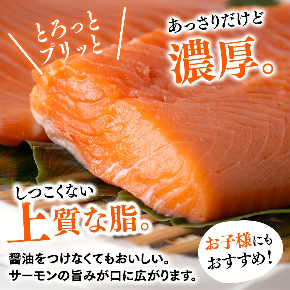 銀鮭養殖の発祥地「宮城」で水揚げされた銀ざけ。綺麗なオレンジ色の身。程よく脂がのり、トロける食感。ふわっと香る繊細な旨みが特徴です。