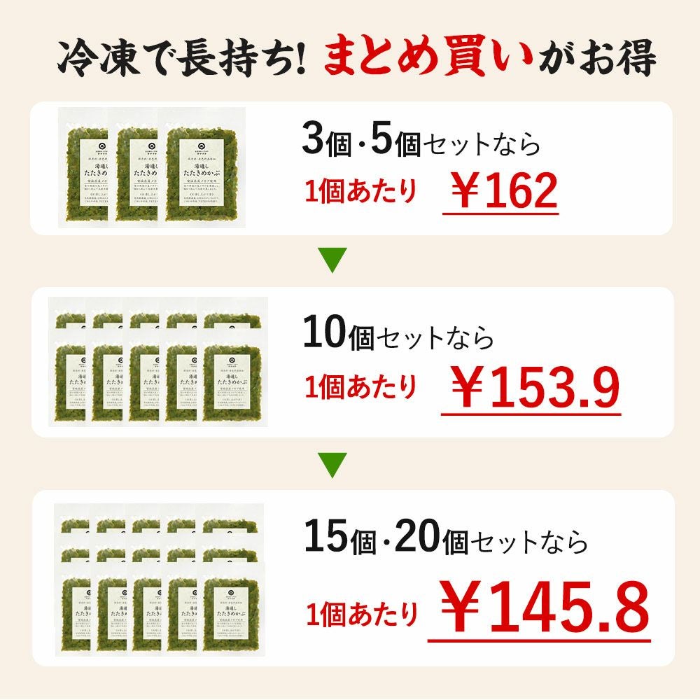 他の画像を見る 冷凍品 まとめ買いがお得 数量選べます クール便でお届け 4.73 15件 湯通したたきめかぶ 70g【味付けなし】*3個から購入できます《クール冷凍発送》 販売価格 ¥ 486 税込 ご注文はこちら お気に入り登録