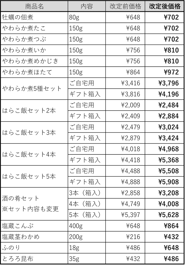 このような状況を受け、誠に心苦しいことではございますが、2025年11月1日より、下記商品の価格を改定させていただきます。