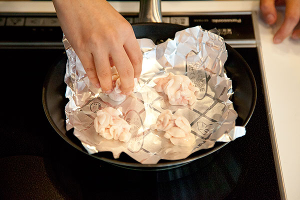新鮮な白子でしか味わえない『焼き白子』。ご自宅のキッチンにグリルのない方にオススメなのが『フライパンで焼く焼き白子』です。便利な「フライパン用ホイルシート」を使えば上手に生白子を焼くことができ、後片付けもとっても簡単です。コツは弱火でじっくり焼くこと。香ばしい皮と濃厚でクリーミーな焼き白子をぜひ一度お試し下さい。