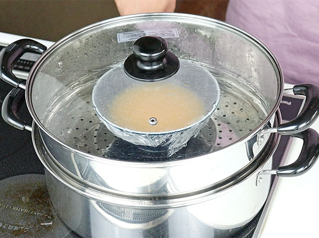 沸騰した蒸し器に入れ、中火で約15分ほど蒸します。